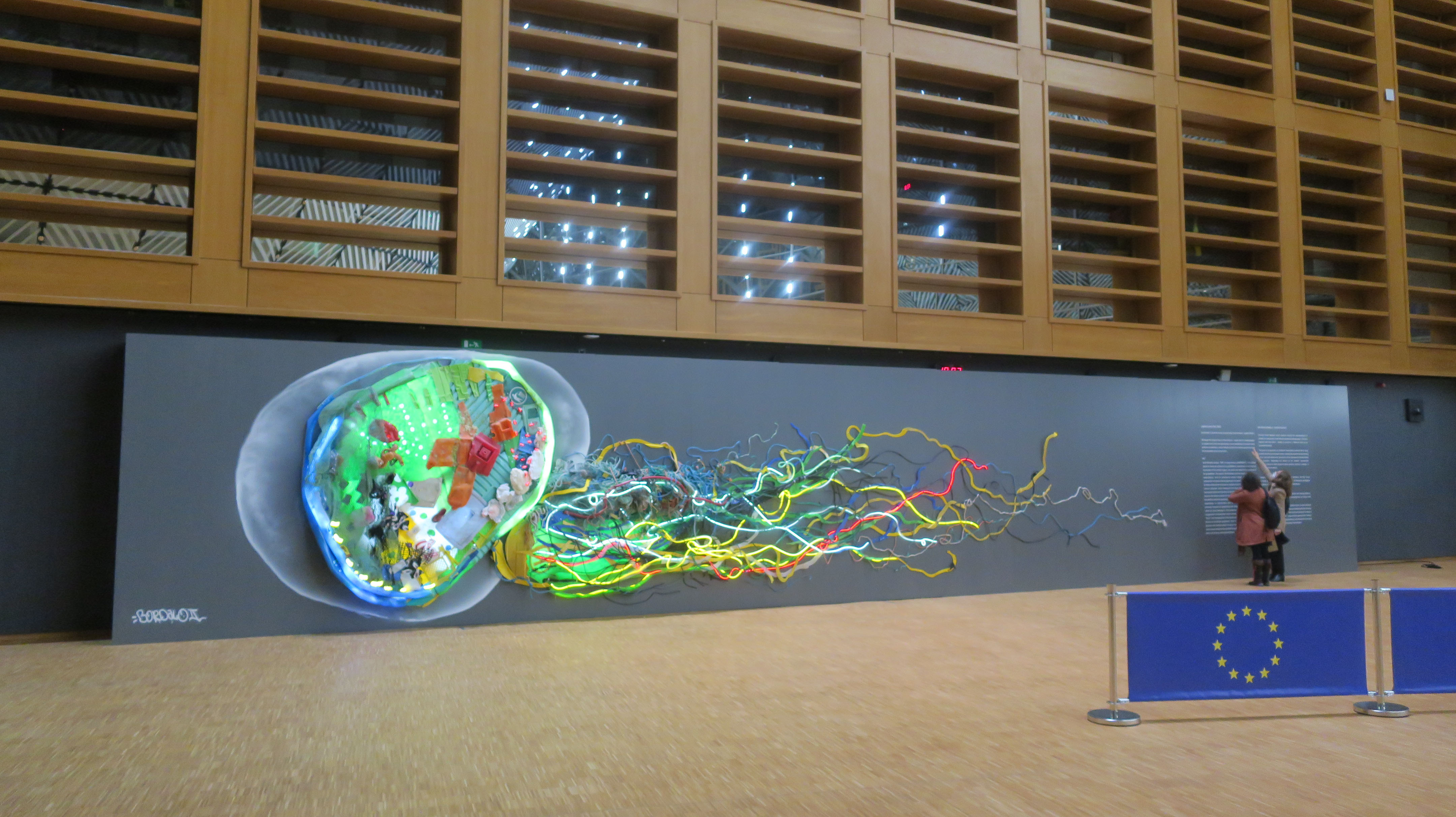 Lighted Plastic Jellyfish in Europa Building for the Portuguese Presidency Semester in the EU